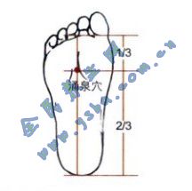 取穴窍门:卷足,足底前1/3处可见有一凹陷,按压有酸痛感处